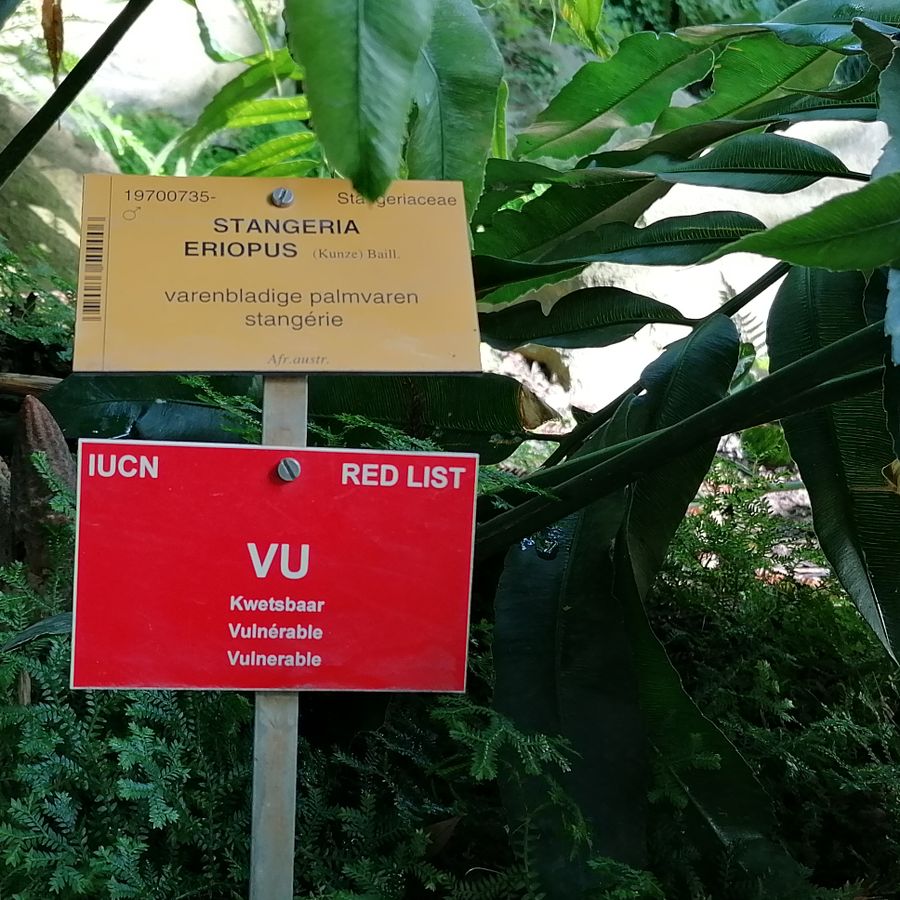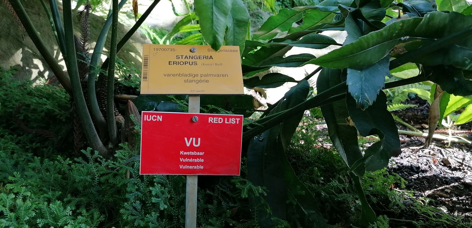 The International Union for Conservation of Nature (IUCN), together with scientists, draws up a global red list of endangered species. The Botanic Garden also participates in this effort by housing as many endangered species as possible. At present, Meise Botanic Garden houses more than 300 different endangered species in its plant collections. In the Plant Palace, the IUCN status of endangered species is shown on a red label next to the plants.