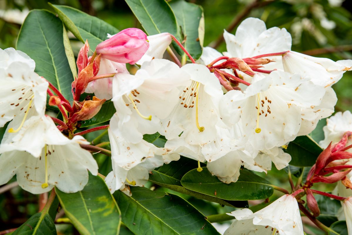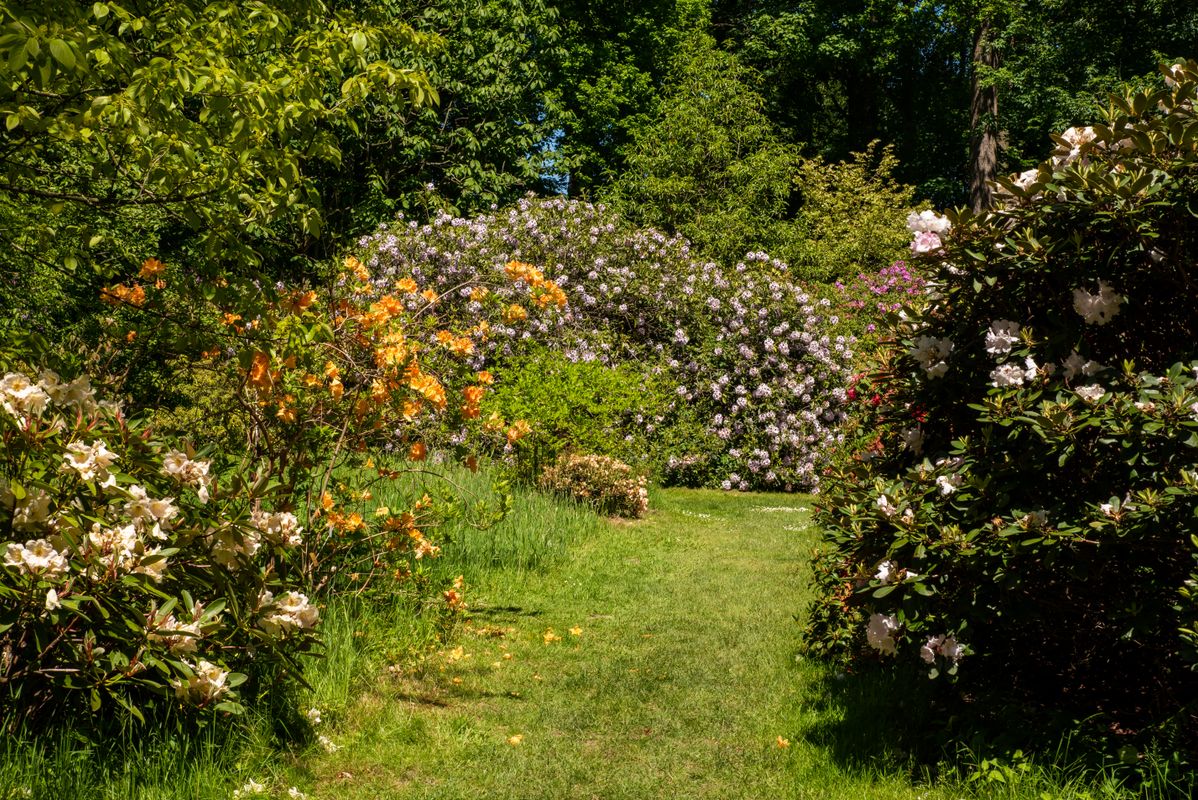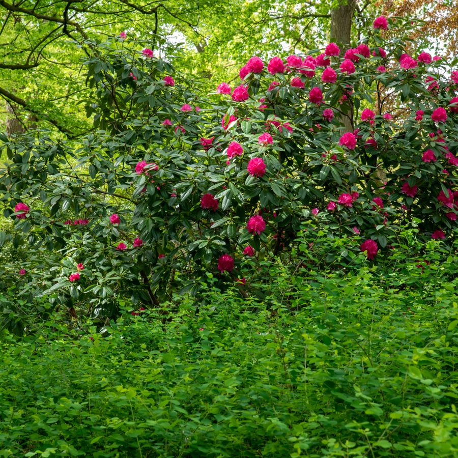 In the Rhododendron forest, between the Rose Garden and the Orangery Pond, more than 300 wild species and cultivated varieties bloom between March and June. The so-called 'Hardy Ghent Azaleas', a group of rhododendrons from the heyday of Belgian horticulture, also have their place here.
