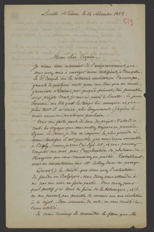 Parmi les correspondances de botanistes, la pièce maîtresse est une collection de quelque 7500 lettres envoyées à François Crépin (1830-1903), auteur du Manuel de la flore de Belgique, fameux rhodologue et directeur du Jardin botanique de 1876 à 1901. Un tiers de cette collection a déjà été décrite et numérisée et est disponible dans le catalogue de la bibliothèque.