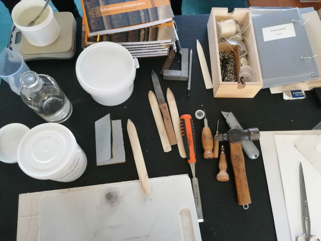 Marijn De Valk, restauratrice basée aux Pays-Bas, nous aide dans ce projet. Elle a formé l'équipe aux “premiers secours” et supervise le travail. Les résultats, toujours réversibles, sont assez spectaculaires.