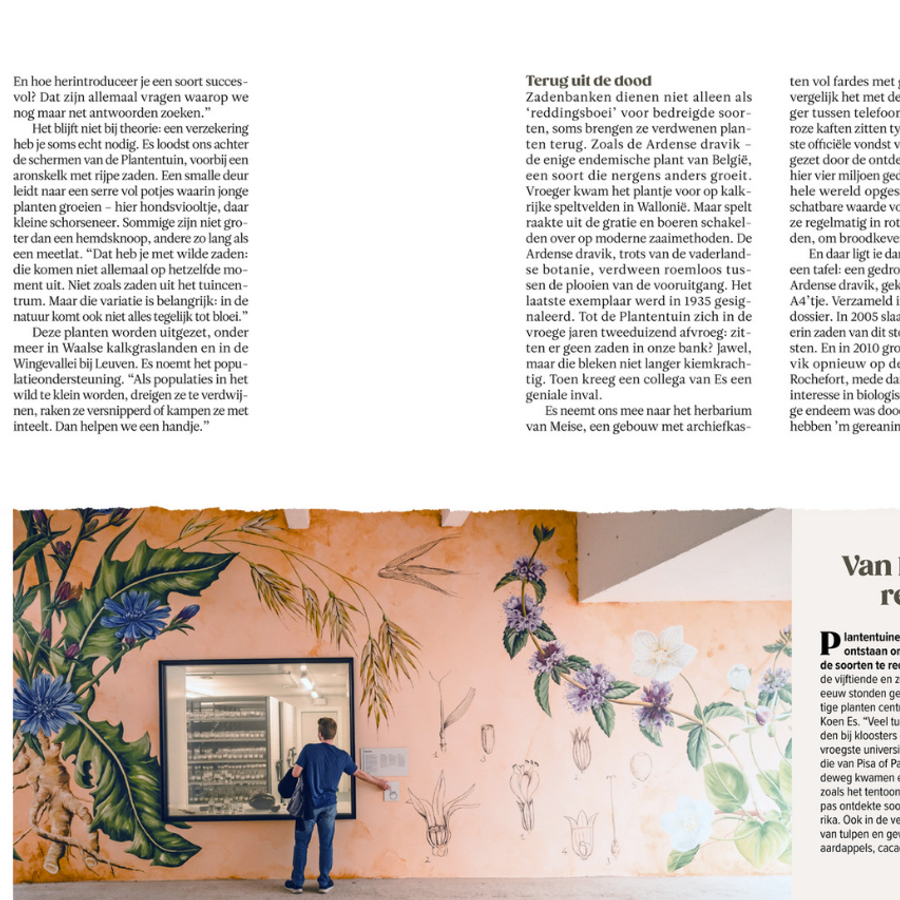 In het artikel lees je hoe we planten bewaren en beschermen in de Groene Ark, hoe we zaden opslaan voor de toekomst en hoe de gedroogde planten in ons herbarium zelfs na eeuwen nog geheimen prijsgeven. Ook de palmvaren Encephalartos laurentius - die we in de Plantentuin met zo veel zorg beschermen - komt aan bod, net als een ode aan onze tuiniers die met een enorme toewijding onze collecties in stand houden en uitbreiden.