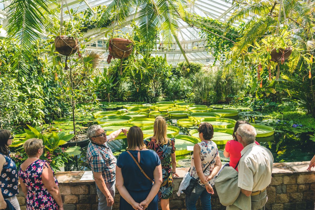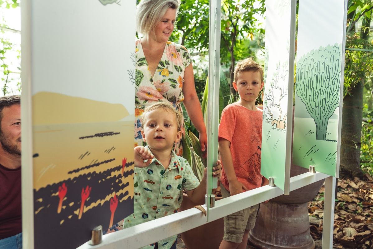 Een wandeling van ongeveer 1 km die je ook bij regen kan doen, het grootste deel loop je door het mooie serrecomplex. Dankzij de vele doe-elementen leert je met de hele familie onderweg spelenderwijs bij.