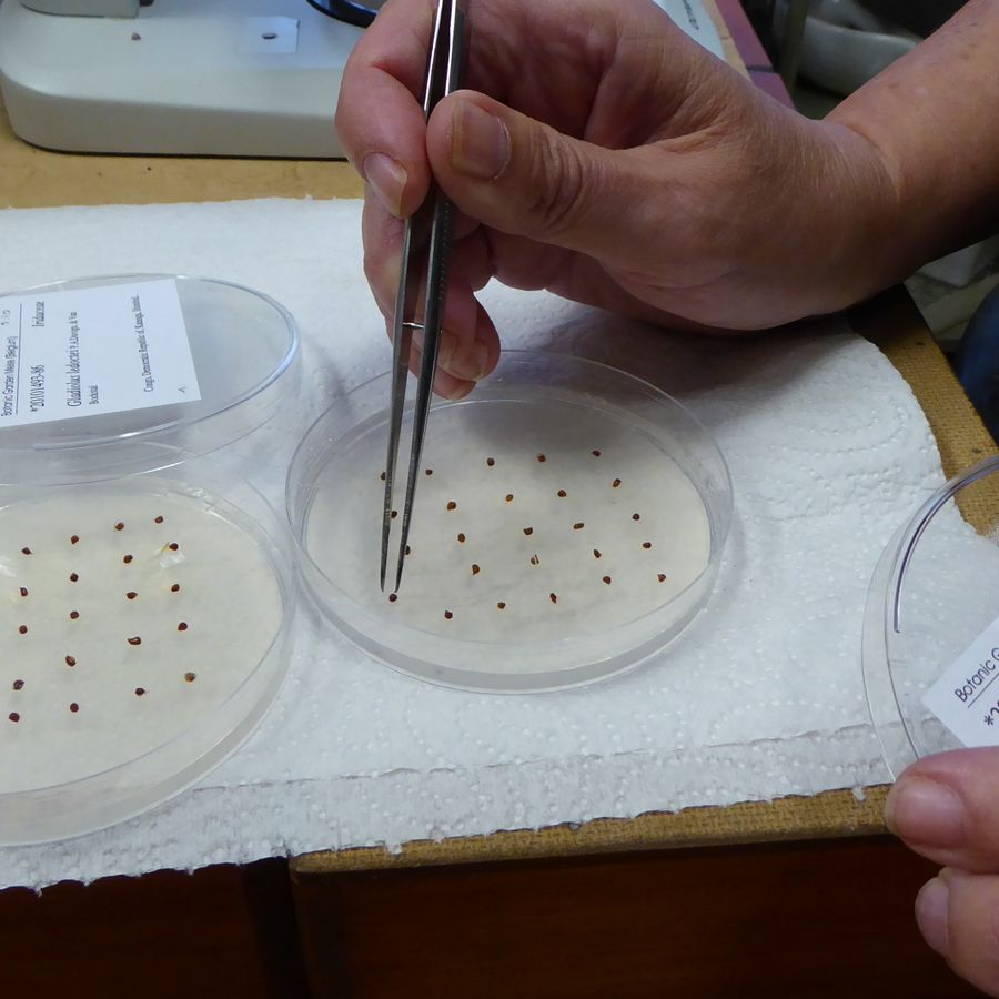 Dinsdag 12 maart 2024 was de 10.000 ste kiemtest in de zadenbank een feit. Een medewerker van de zadenbank plaatste de zaden van Cyperus rubicundus, een soort cypergras, op een petrischaaltje met voedingsbodem agar bij een afwisselende temperatuur van 20/30°C en lichtregime 8/16 uur. Deze zaden zullen opgekweekt worden tot planten. Ze leveren zo DNA-materiaal leveren voor een moleculaire analyse.
