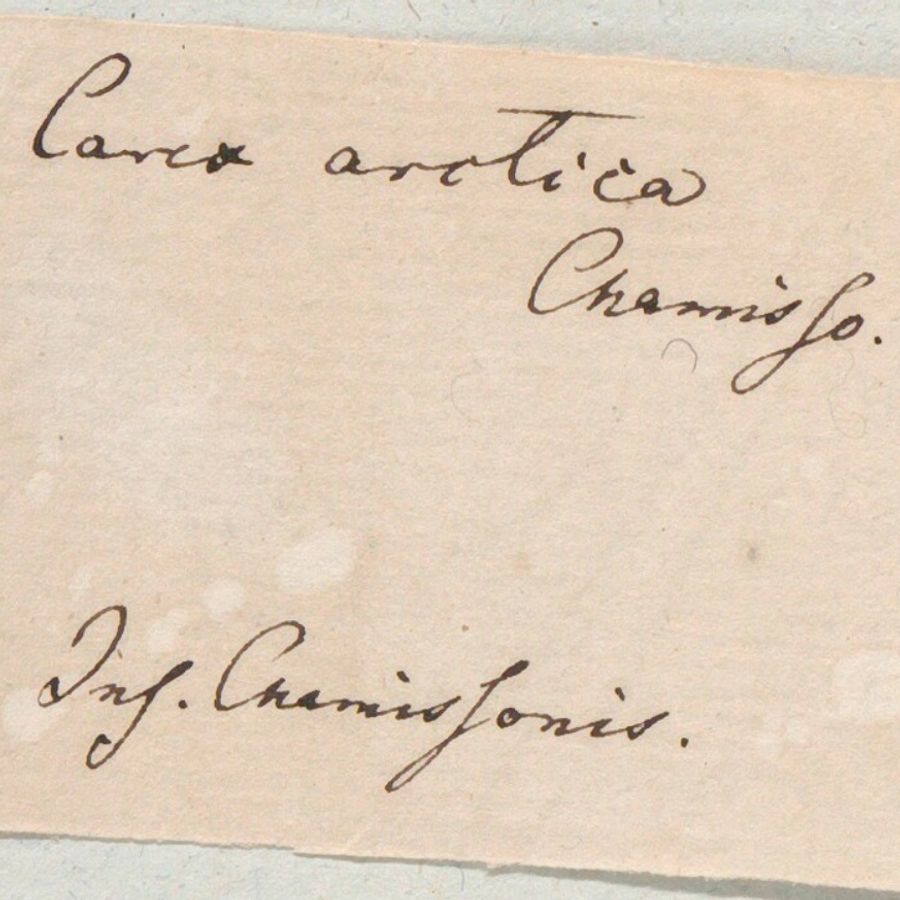 Tijdens de inventarisatie en conservatie van het herbarium van Franz Wilhelm Sieber (onderdeel van het Van Heurck Herbarium in Plantentuin Meise) hebben we onlangs een kleine maar waardevolle verzameling planten ontdekt die door Adelbert von Chamisso zijn verzameld tijdens de Russische Rurik-expeditie (30 juli 1815 - 3 augustus 1818).