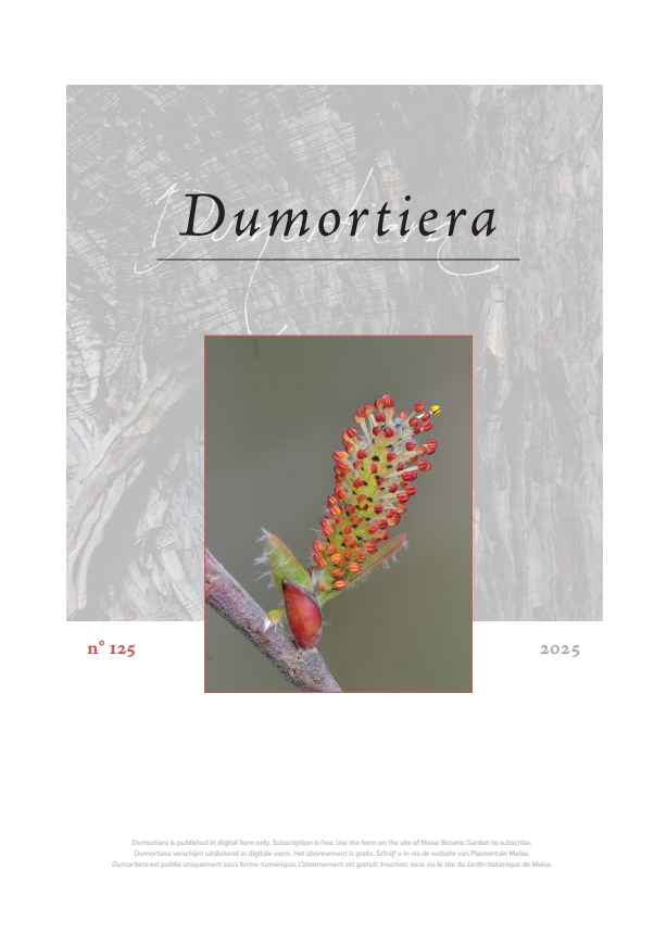 Gratis abonneren ! DUMORTIERA verschijnt uitsluitend in digitale vorm.> Schrijf u hier in (link).DUMORTIERA is een uitgave van Plantentuin Meise en de Koninklijke Belgische Botanische Vereniging. Contacteer webshop@botanicgardenmeise.be voor informatie en bestellingen van de gedrukte afleveringen 1-100 (1975-2012). Talrijke artikels over niet-inheemse planten zijn online beschikbaar op de website Manual of the alien plants of Belgium: https://alienplantsbelgium.myspecies.info (zie “Biblio”). Op termijn zullen de nummers 1 tot 100 integraal consulteerbaar zijn. Overzicht inhoud Dumortiera 1-100 [pdf]. De auteurs worden verzocht de auteursrichtlijnen strikt te volgen [pdf] |