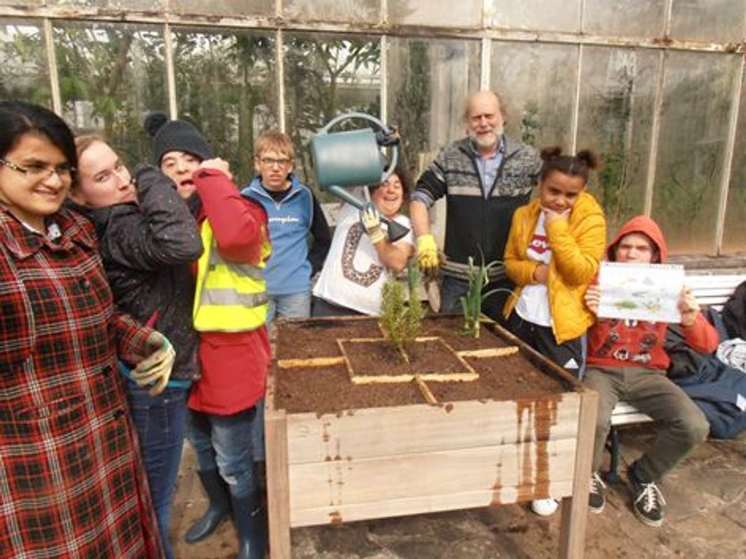 In afwachting van een grote sociale moestuin, die in 2020 opengaat in de ommuurde tuin van de Oranjerie, oefenen we dit jaar het moestuinieren alvast 'in het klein'. Leerlingen van de Cardijnschool, een school voor buitengewoon onderwijs in Anderlecht, verzorgden dit voorjaar de beplanting en het onderhoud van onze vierkante-meter-moestuintjes. Leerlingen én leerkrachten waren heel enthousiast.