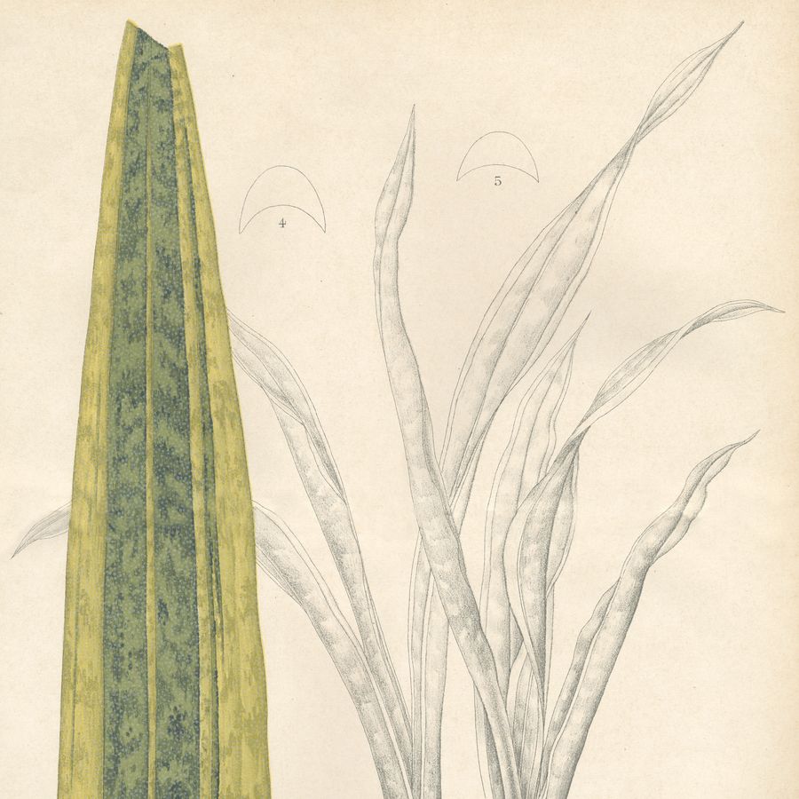 Sansevieria’s of vrouwentongen zijn erg populaire kamerplanten. De variëteit met gele bladrand (Sansevieria trifasciata var. Laurentii) werd in 1904 voor het eerst beschreven door Emile De Wildeman, een wetenschapper van de Plantentuin. Het exemplaar dat je ziet in het Plantenpaleis (kas Moesson- en savannewoud), stamt uit 1907 en is de moederplant van alle gekweekte geelgerande sansevieria’s wereldwijd.