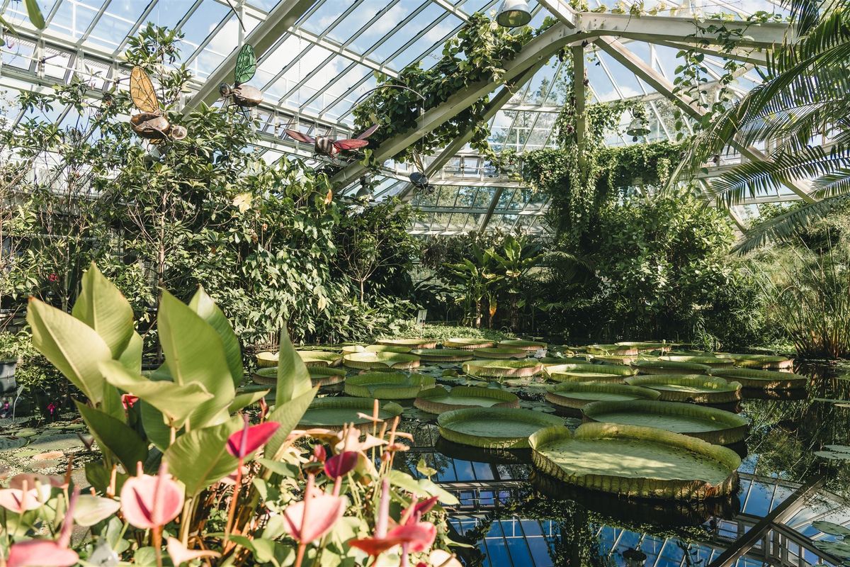 In de kas van de tropische draslanden trekken de reuzenwaterlelies op de vijver meteen de aandacht. Victoria cruziana heeft grote drijvende bladeren met opstaande randen. De lucht in en tussen de ribben aan de onderkant van het blad, zorgt voor het enorme drijfvermogen. Het blad kan tot 40 kg dragen.